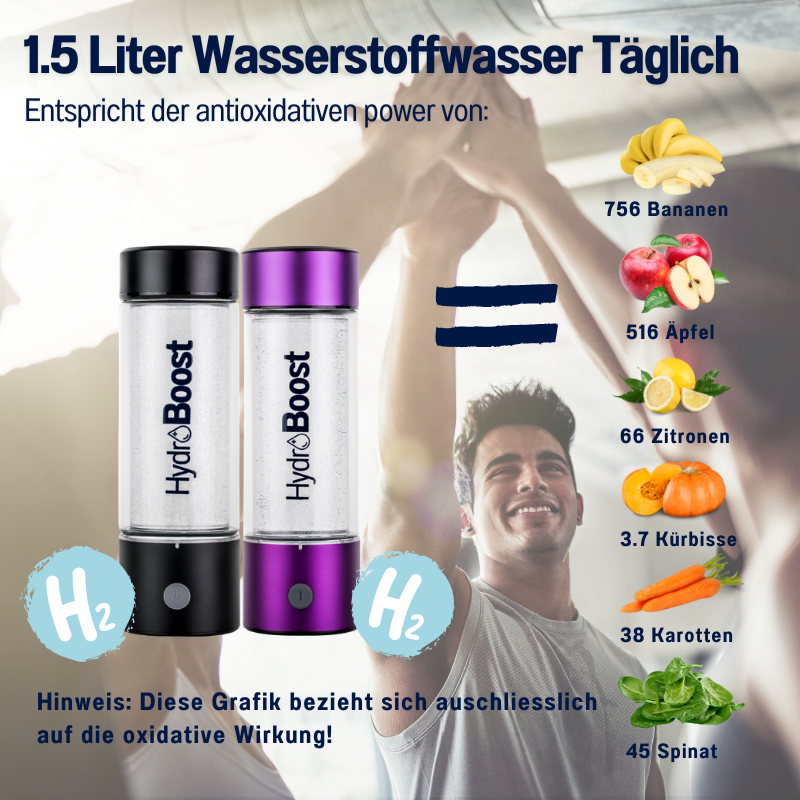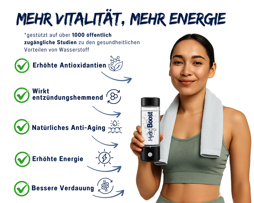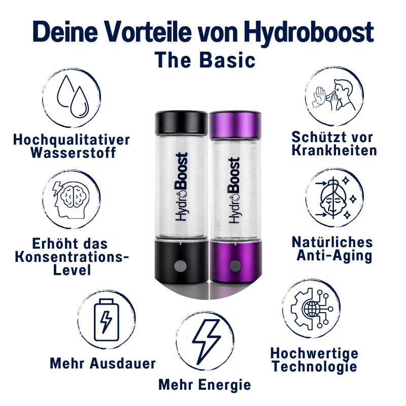 Geniesse all diese Vorteile von der HydroBoost Flasche für ein vitaleres Leben!